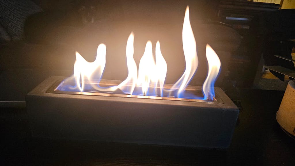We install fireplaces and ethanol burner insert often, usually 24-36". These take 1-2L to fill. Burn time varies depending on the burner you have (large surface area means faster burns). Tested small amounts (200ml) in a 24" burner, but given the size it burned out within minutes. Pouring the full 1L bottle appears to sustain the flame much longer, we capped it after 5mins so I'm unsure how long it might last. No smells, flame was strong and easy to ignite.