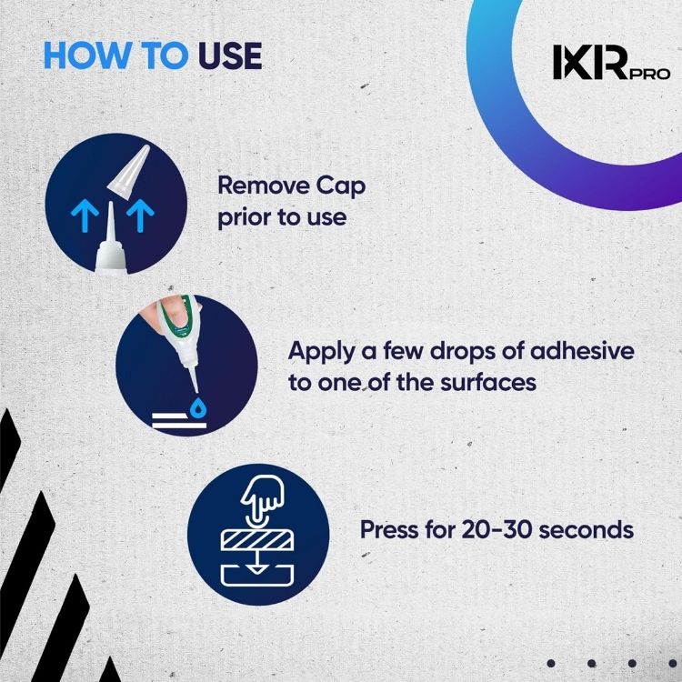 It typically cures in 10–20 seconds on its own, depending on humidity and material type. For an instant bond, pair it with IxirPro CA Glue Activator Spray.